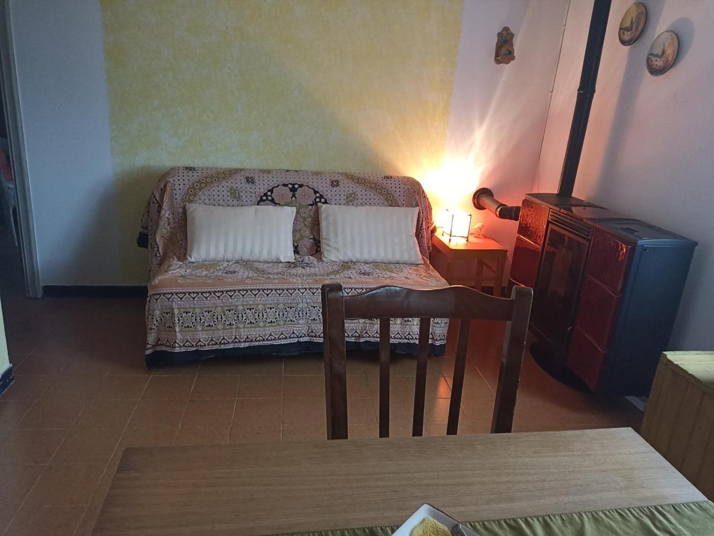 Appartamento con Vista Montagna. Featuring a private entrance, this apartment consists of 1 living room, 1 separate bedroom and 1 bathroom with a shower and a bidet. Guests will find a stovetop, a refrigerator, kitchenware and an oven in the kitchenette. The apartment also offers a barbecue. Among the room amenities are a seating area, a dining area, a wardrobe as well as an outdoor dining area and garden views. The unit offers 3 beds.