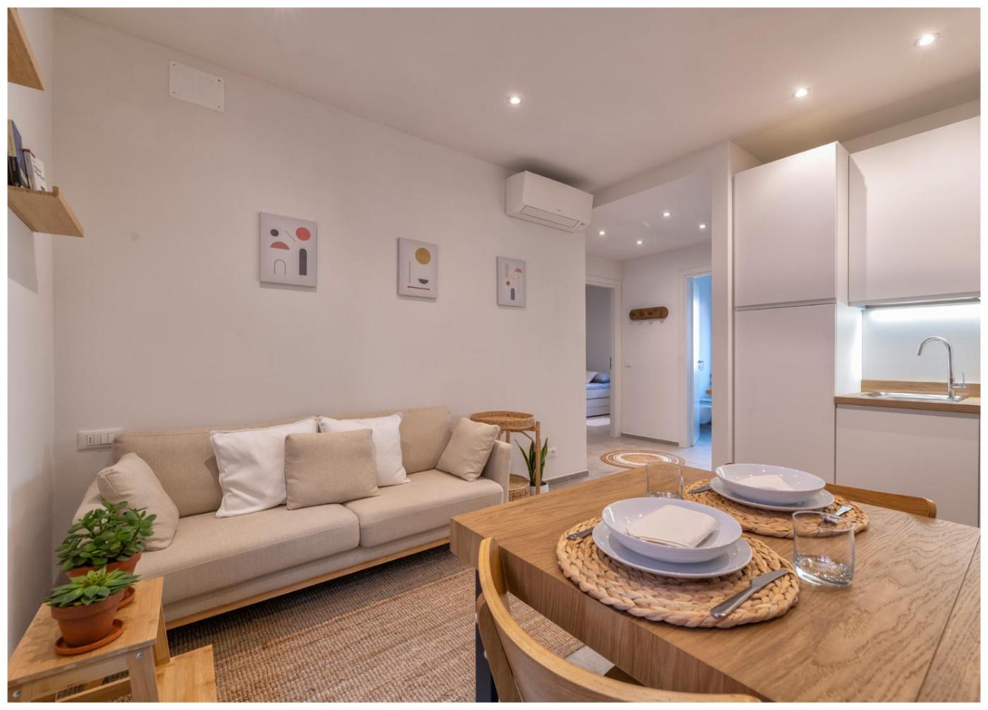 Questo appartamento con aria condizionata comprende 2 camere da letto, un soggiorno, una cucina con utensili, frigorifero e macchina da caffè, e 1 bagno con bidet e doccia. Presso questo appartamento troverete asciugamani e lenzuola tra i servizi offerti.